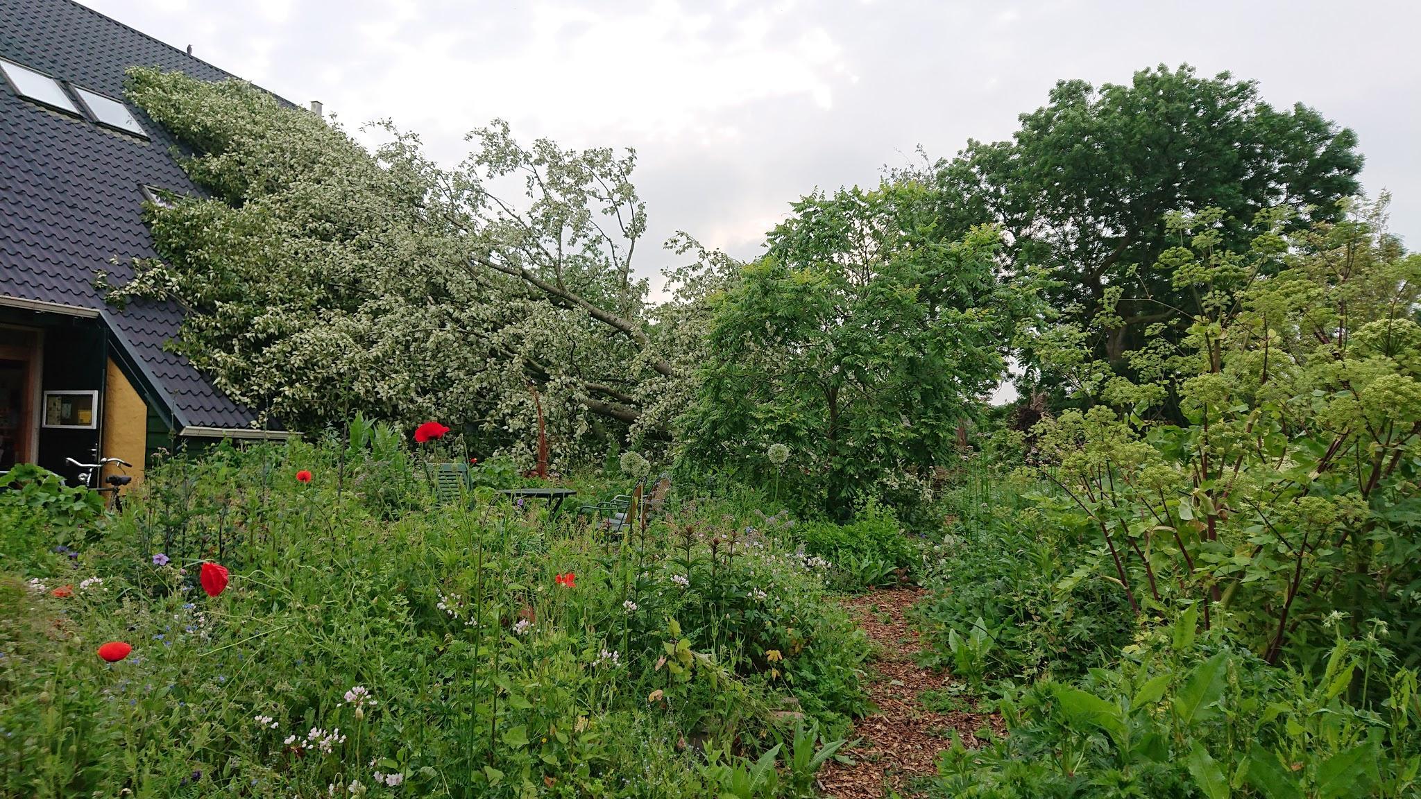 Afgelopen dinsdagnacht was er een vreselijke storm. Code oranje voor het hele land. Meestal zijn die code waarschuwingen wat overdreven maar dit keer was het raak. Het ging heel erg te keer. Zo zelfs dat de Balsem Populier die in de Wiershoecktuin staat omwaaide. Iedereen was geschokt want de boom is erg geliefd. Hij ruikt heel erg lekker, vooral als je in zijn schaduw van een warme zomerdag geniet.